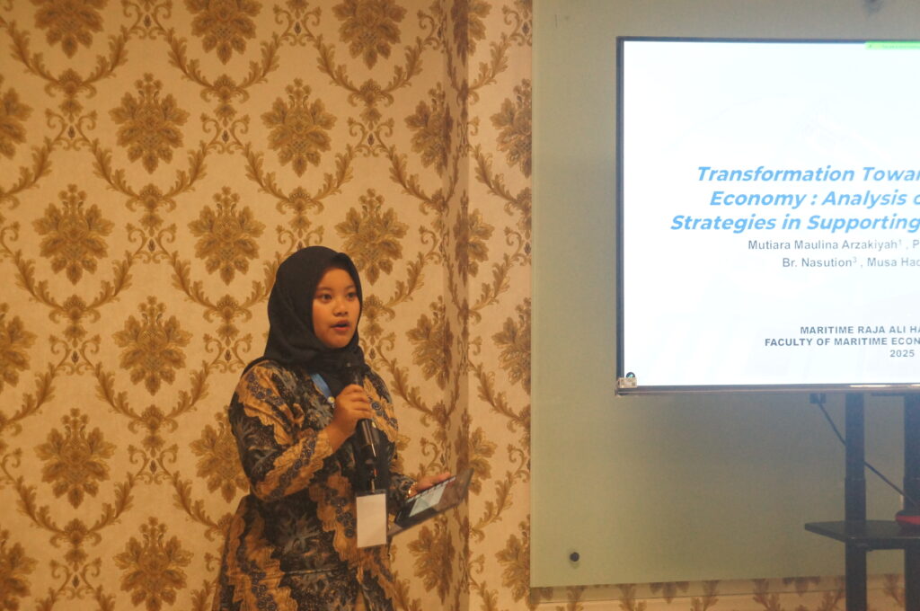 Para presenter memaparkan hasil penelitian mereka yang mencakup topik digitalisasi perdagangan lintas batas, transformasi bisnis berbasis maritim, serta pengembangan ekonomi biru di kawasan perbatasan. Presentasi berlangsung interaktif, dengan sesi diskusi dan tanya jawab yang memperkaya wawasan peserta.