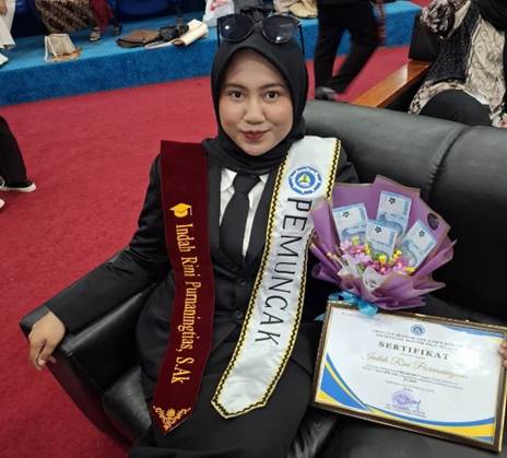 Pencapaian ini menjadi kebanggaan tersendiri bagi Indah. Ia mengaku tidak menyangka keinginannya untuk menjadi pemuncak di Program Studi Akuntansi benar-benar terwujud. “Rasanya bahagia dan sangat bersyukur. Awalnya itu hanya keinginan yang terbayang saja,” ujarnya.