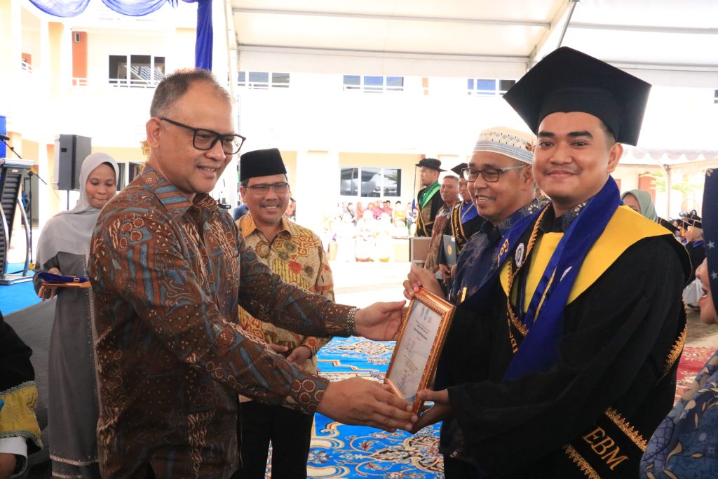 Ia menceritakan perjalanan pendidikannya yang penuh tantangan, termasuk perjuangannya untuk mendapatkan restu orang tua untuk kuliah. “17 Oktober 2021, saya diantarkan oleh orangtua ke Tanjungpinang, untuk menuntun ilmu. Bercerita sedikit, saya adalah orang yang keras kepala teman-teman. Sebelumnya saya tidak diizinkan oleh orangtua saya untuk kuliah. Berkali-kali saya yakinkan, Pak, saya mau kuliah. Mak, saya mau kuliah. 3 bulan lamanya saya memohon untuk direstui menjalani perkuliahan. Saya anak kos, awal ngekos, jauh dari orangtua, jatuh airmata saya ingat mereka. Rindu rumah, ingat masakan mamak dan lain-lain. Saya sempat menjanjikan bahwa saya akan lulus tepat waktu. Tapi sungguh bersyukur saya, Allah kasih lebih daripada itu. Lulus 3,5 tahun, menjadi wisudawan terbaik FEBM dan Universitas tercinta” ujarnya.